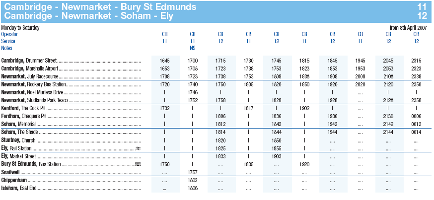 timetable for trains to/ from Ipswich, Cambridge London and Peterborough